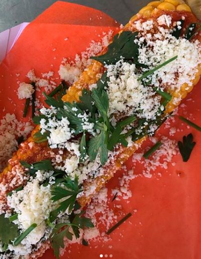 El otro espacio en donde pudimos ser protagonistas fue ni más ni menos, en el puesto de Narda Comedor. Quien utilizó los Kamados Argentinos para un plato muy playero: Choclos que lo parió. Choclos ahumados con su chala servidos con queso, salsa a base de chile y perejil.